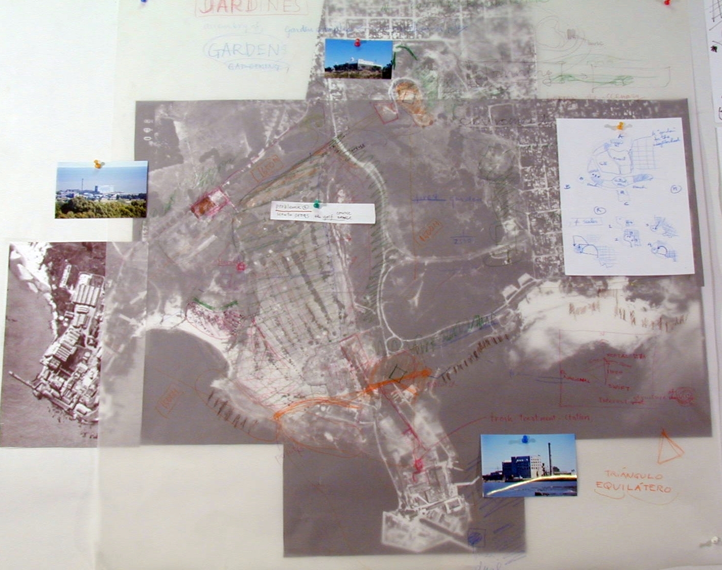 En un relevamiento simple detectamos dos tipos de problemas con respecto a la basura. La basura dispersa actualmente se puede eliminar con una limpieza profunda. El otro problema es que una parte de la zona donde se ven los tres hitos (punto A2) se usa como depósito de basura. Creemos que este es un problema complejo, y que el edificio de la chimenea puede convertirse en una estación de tratamiento de residuos.