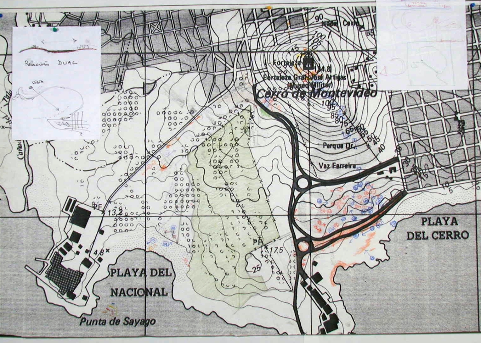 Cuando participé del último Seminario, hablábamos del arroyo Miguelete, que está escondido en la ciudad como un valle. Por otro lado, el Cerro se alza simbólicamente hacia la ciudad. Esa aparente estructura visual entre ciudad y Cerro se puede denominar estructura dual.