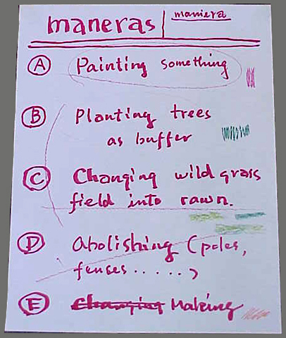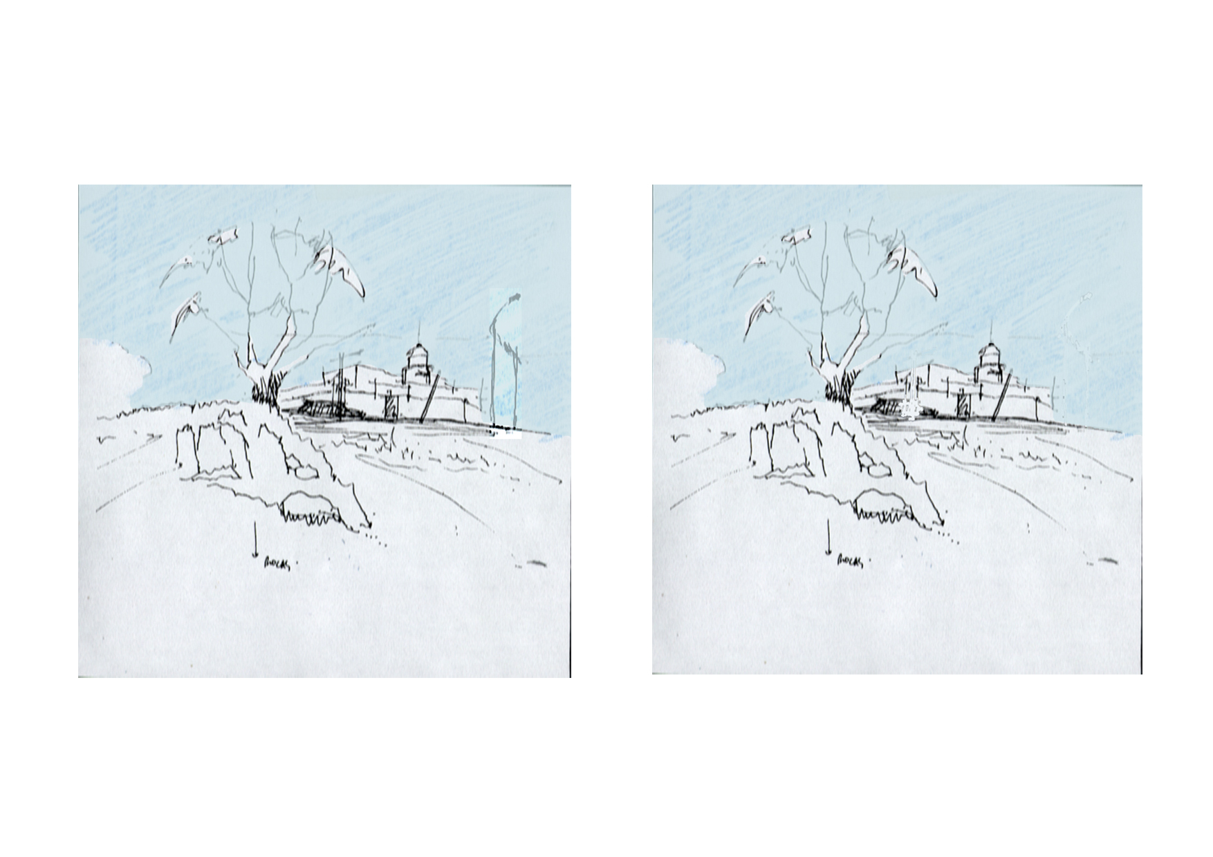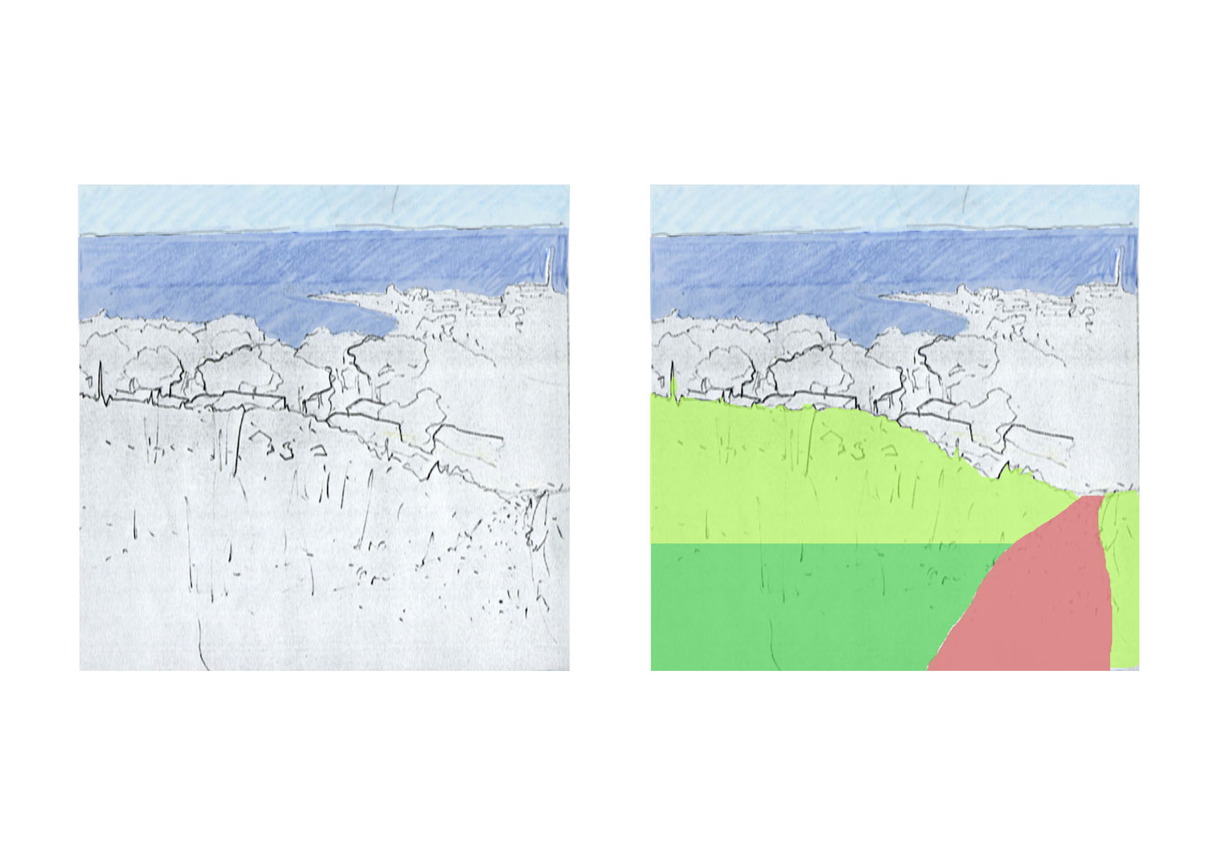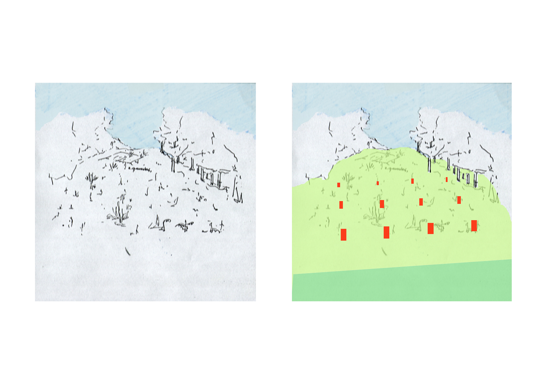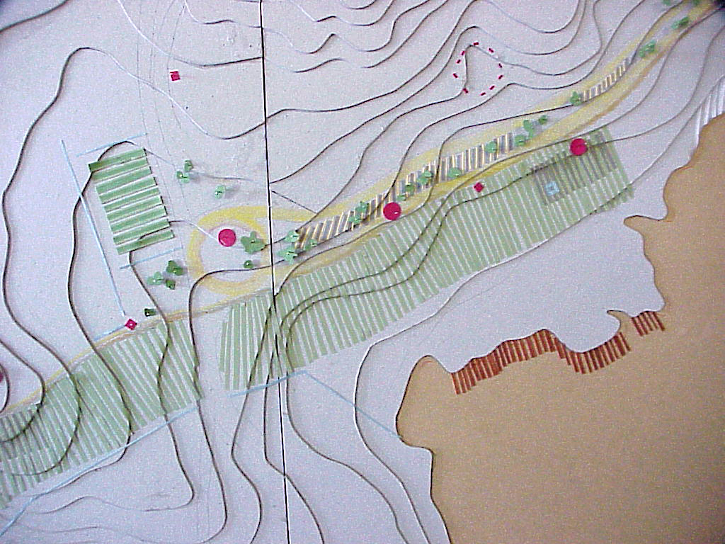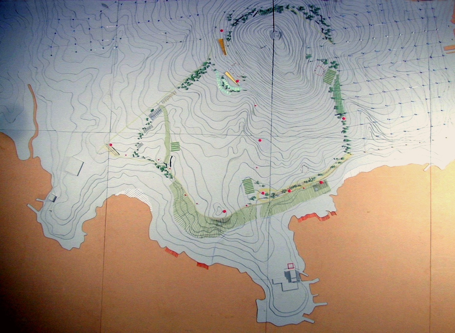 A continuación, hicimos un segundo mapa. Se pueden identificar 3 hitos en nuestro sitio. Uno es la Fortaleza, los otros dos son edificios abandonados. Estando en el sitio, uno se puede orientar con referencia a estos edificios, en otras palabras, son tres attractors principales.