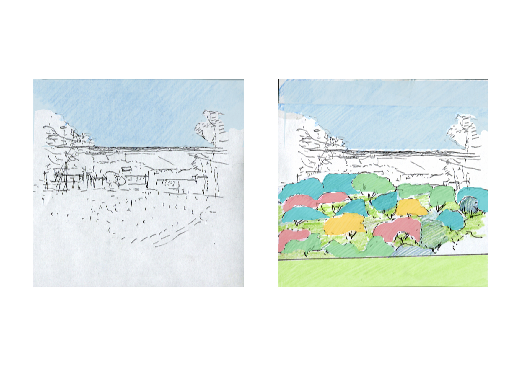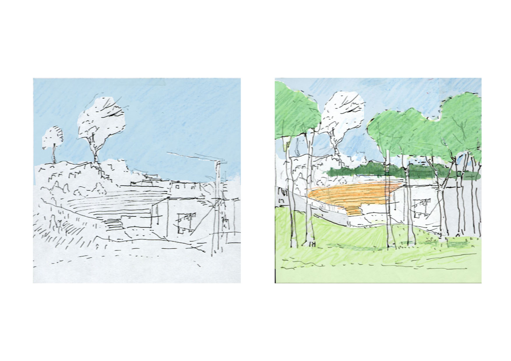 Los escenarios de este parque son fundamentalmente pintorescos. Para resetear estos escenarios necesitamos algo nuevo, por ejemplo, líneas rectas y superficies planas y monocromáticas. Estos nuevos elementos aparecerán en los movimientos de tierras, superficies de plazas y caminos, y canchas de fútbol.