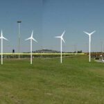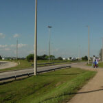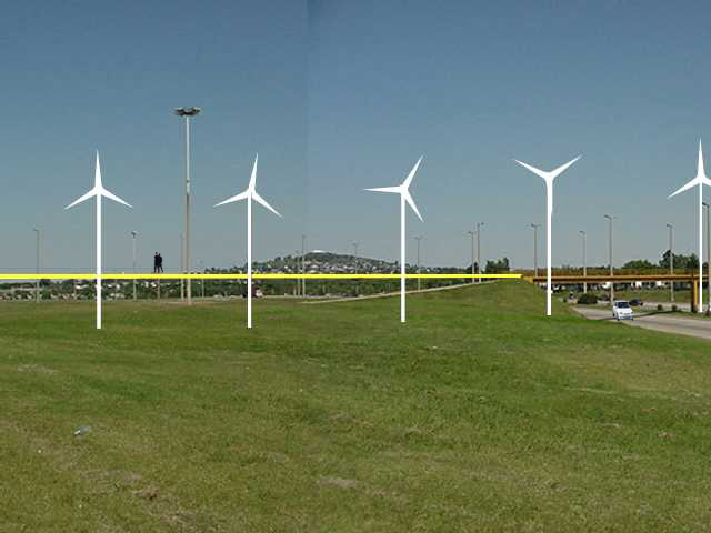 Aprovechando el viento intenso como fuente de energía para iluminar el tramo, se propone instalar seis molinos que, además de su rol productivo, jueguen como caracterizadores del paisaje. Se prolonga el puente peatonal existente para salvar los ramales de conexión de las rutas 1 y 5.