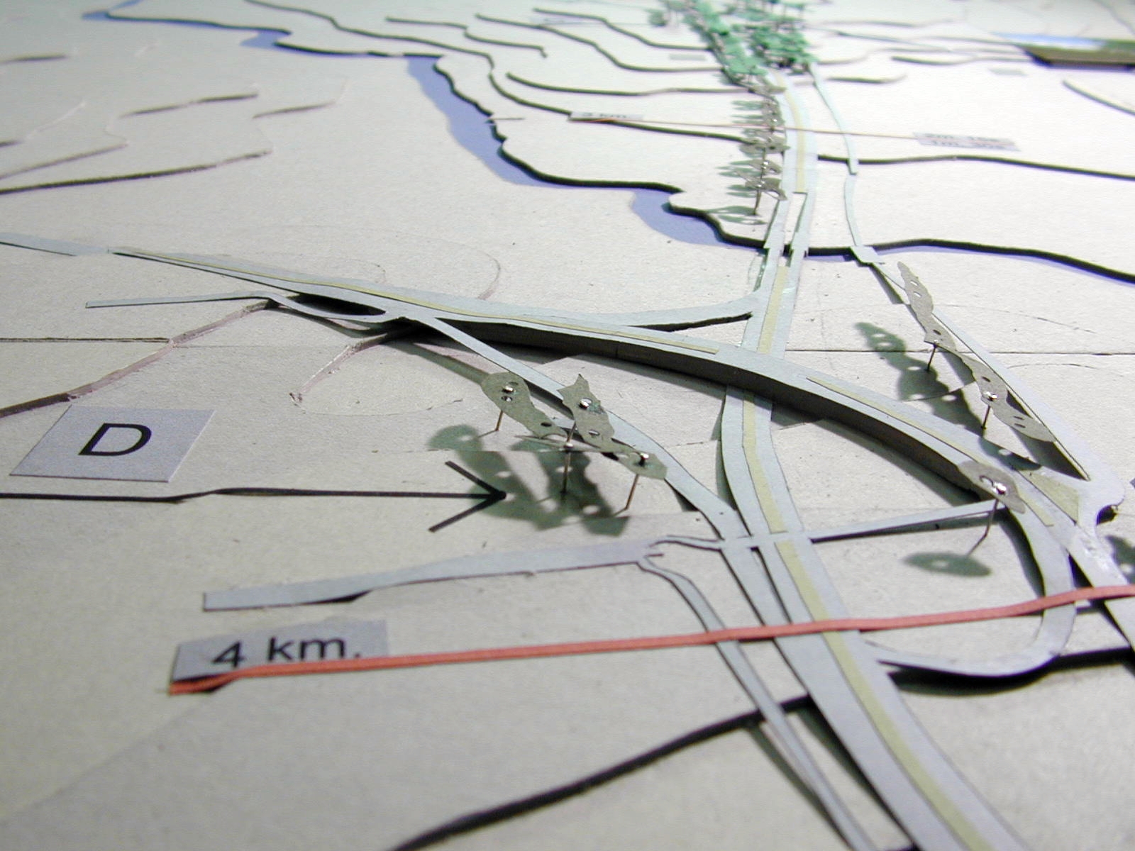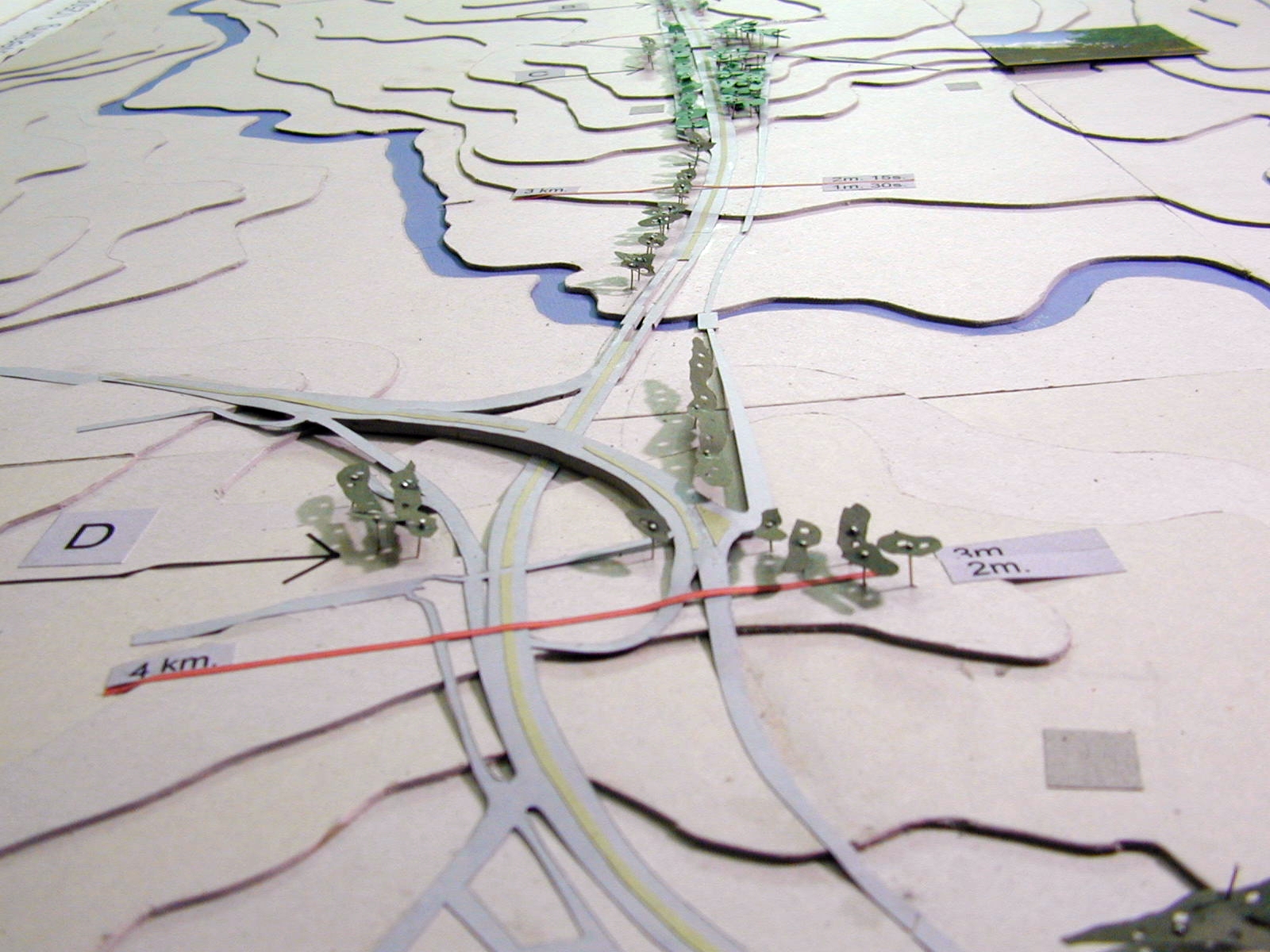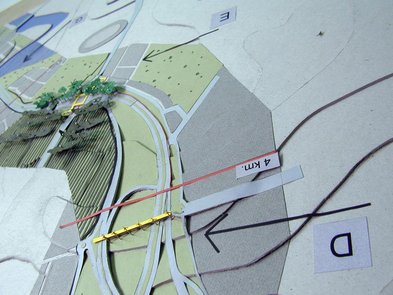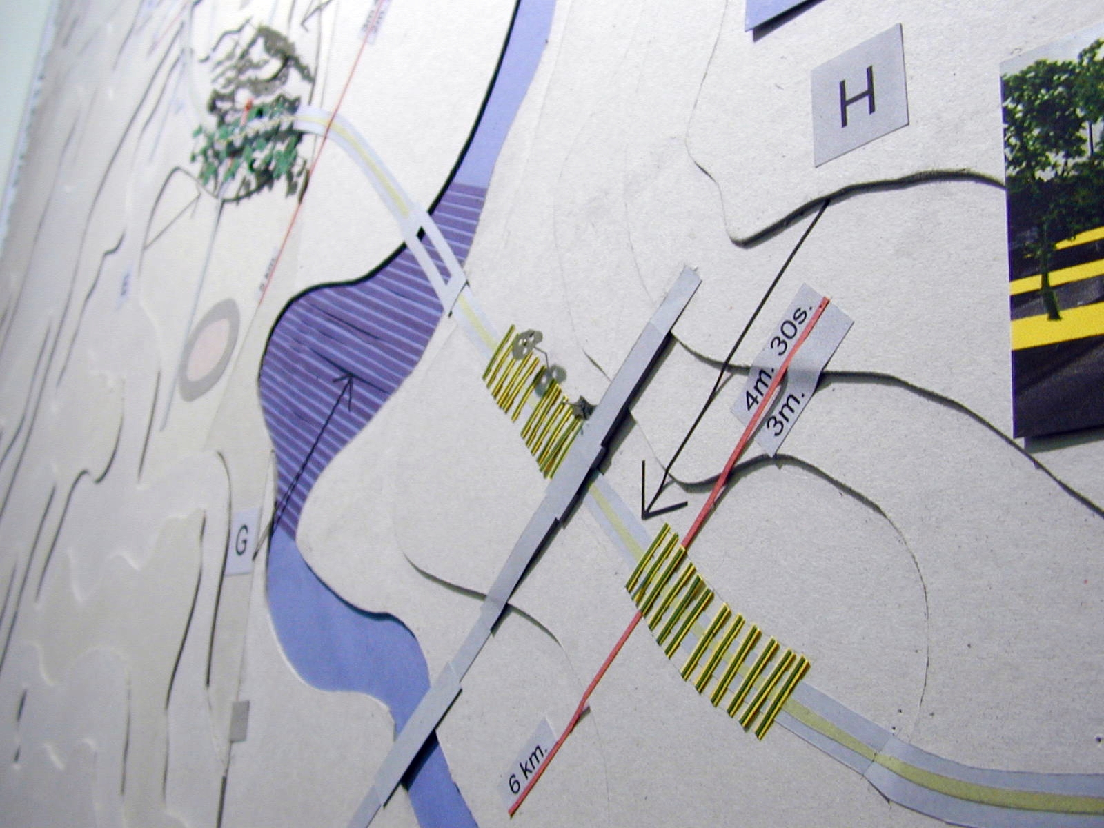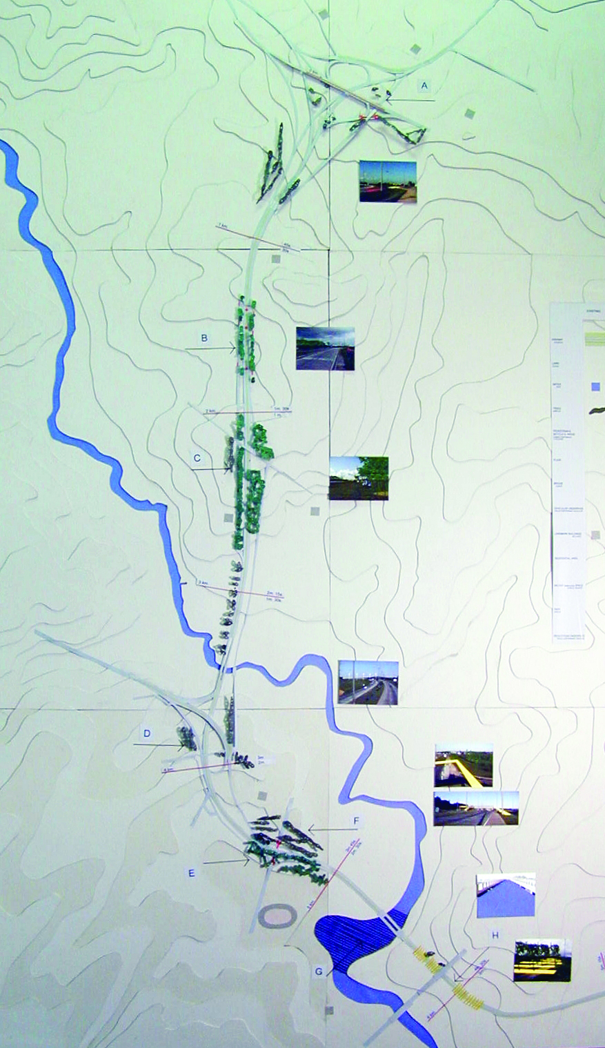 La superposición de dos recorridos, el movimiento de las personas en dos direcciones, lo necesario y lo posible, son expresados a través de las maquetas y de un drama titulado “Cómo vivir a lo largo de la ruta”, el cual presenta una estructura de cierta complejidad.