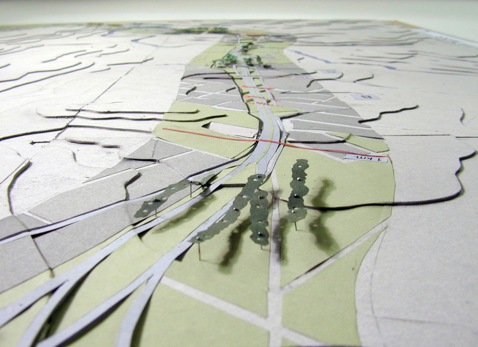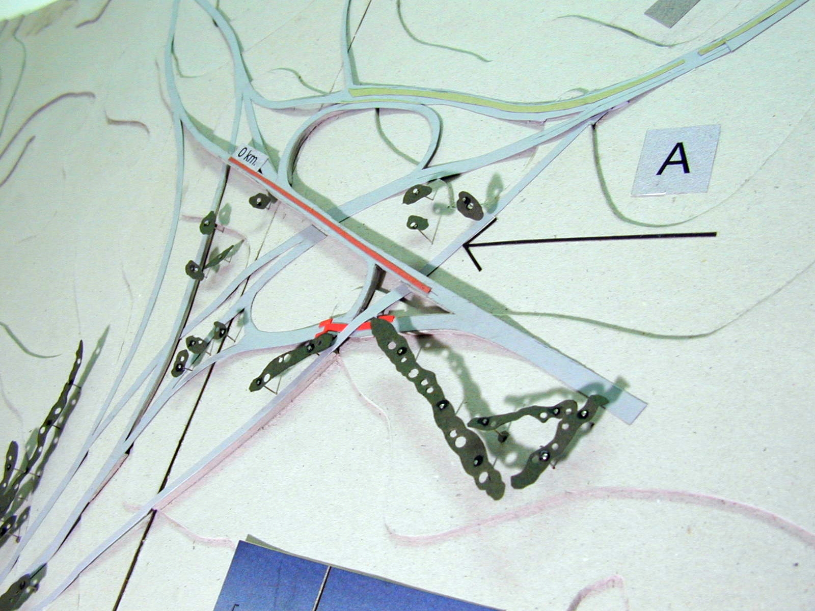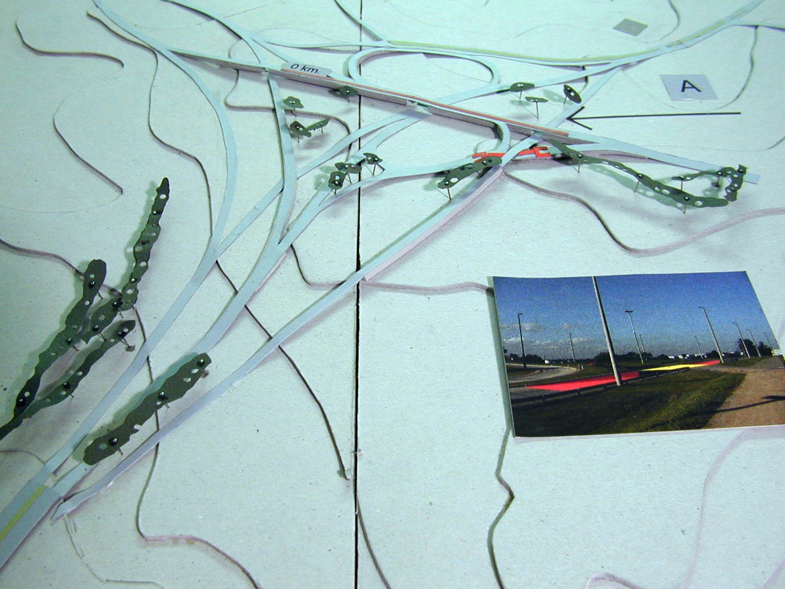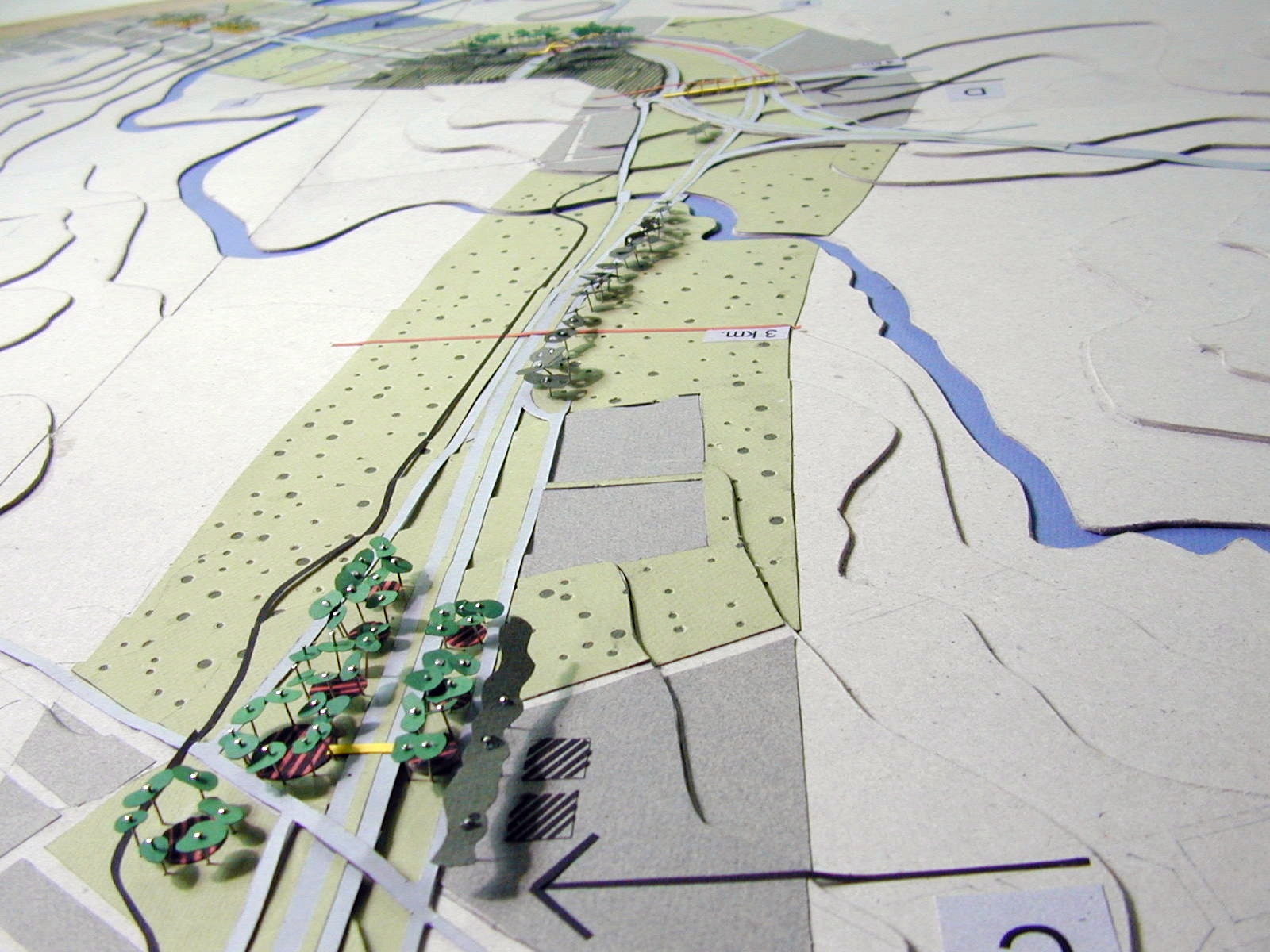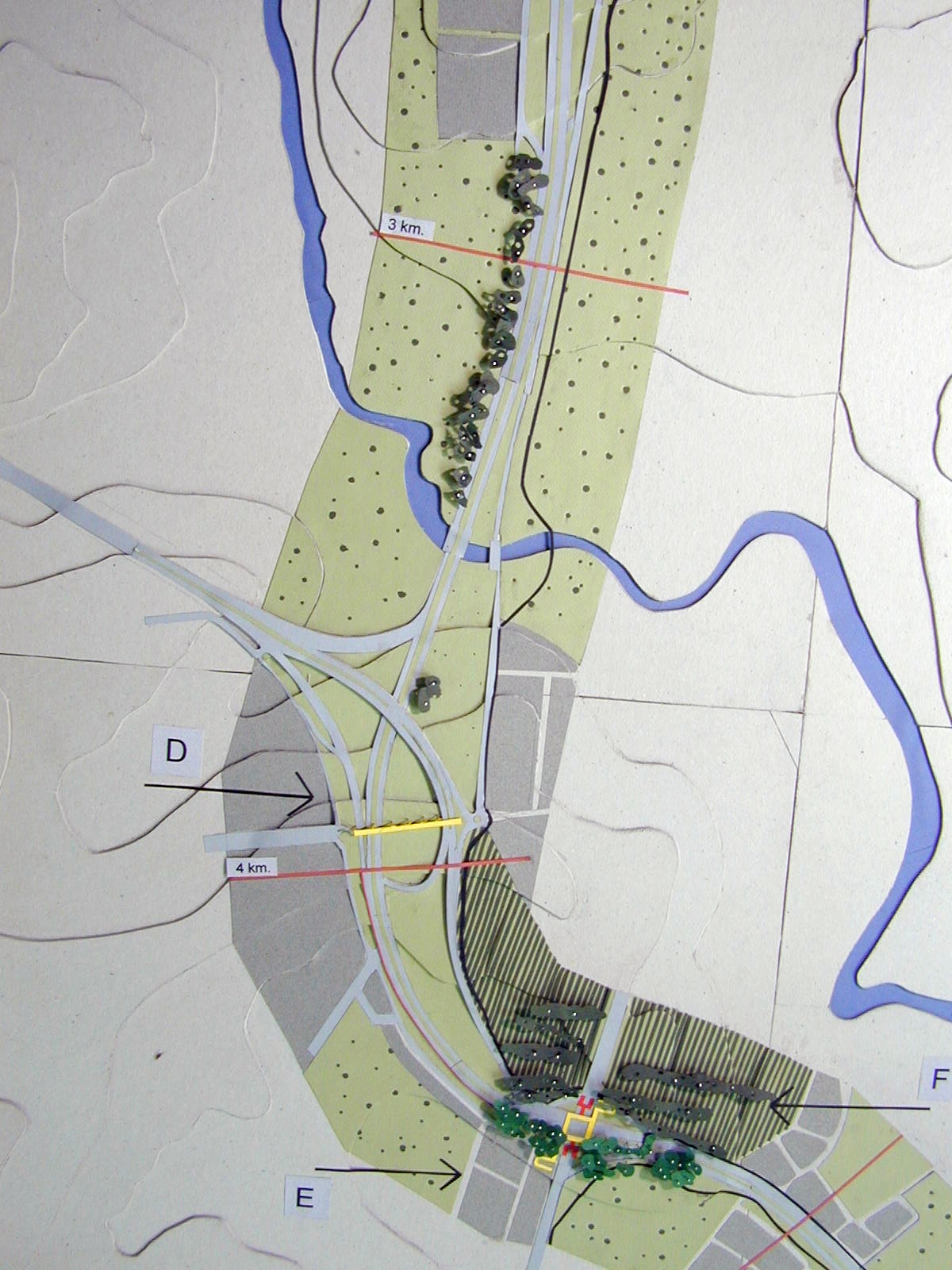 La superposición de dos recorridos, el movimiento de las personas en dos direcciones, lo necesario y lo posible, son expresados a través de las maquetas y de un drama titulado “Cómo vivir a lo largo de la ruta”, el cual presenta una estructura de cierta complejidad.