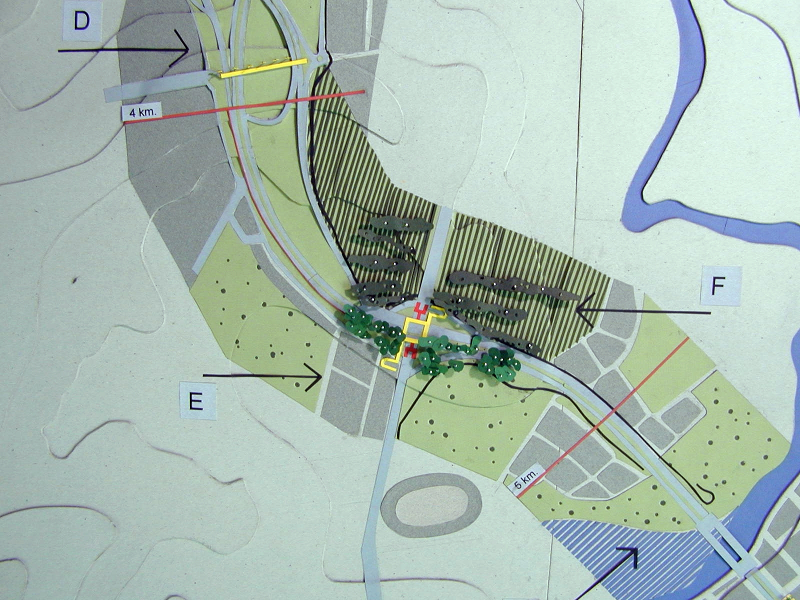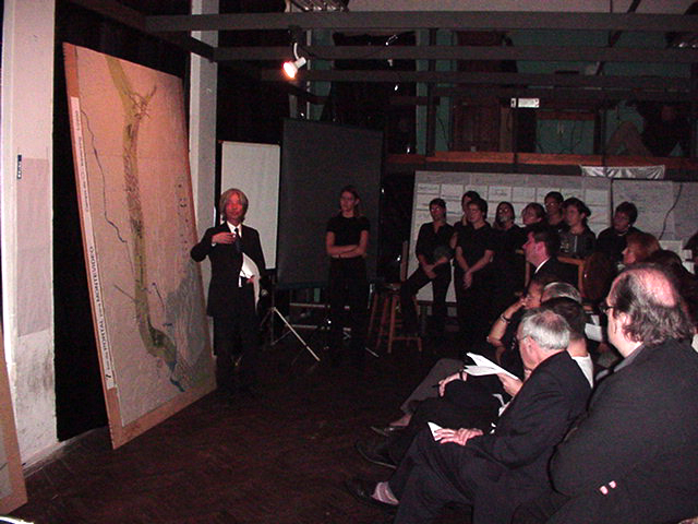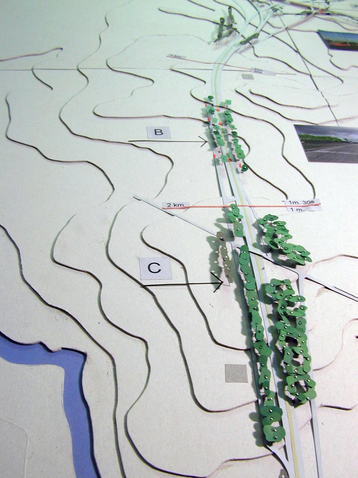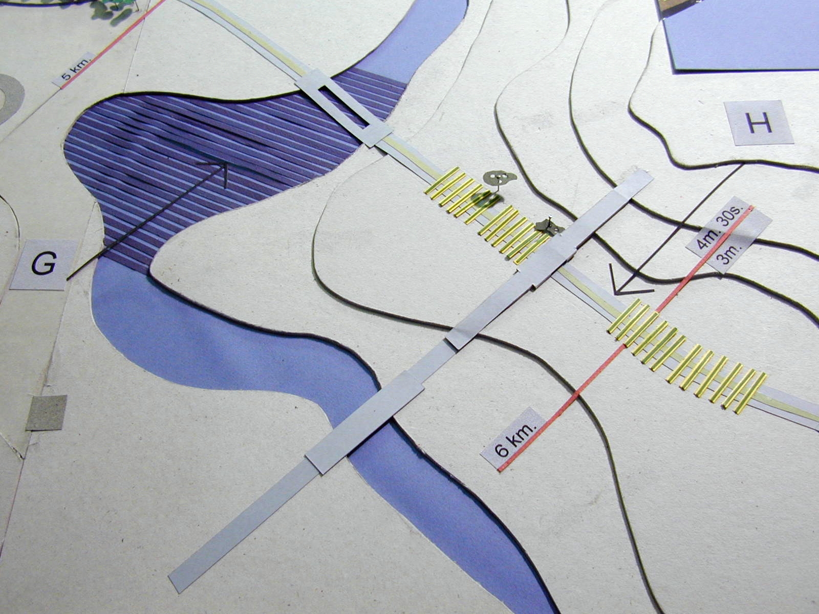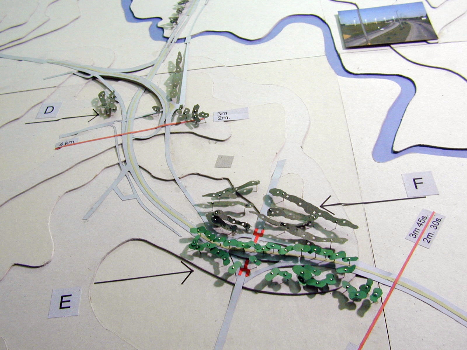 La superposición de dos recorridos, el movimiento de las personas en dos direcciones, lo necesario y lo posible, son expresados a través de las maquetas y de un drama titulado “Cómo vivir a lo largo de la ruta”, el cual presenta una estructura de cierta complejidad.