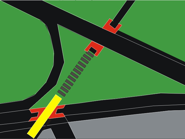 Para mejorar el acceso a equipamientos y servicios locales, se combinan los pares puente peatonal-túnel vehicular y puente vehicular-túnel peatonal, separando las circulaciones peatonal, vehicular y la ciclovía.