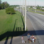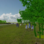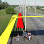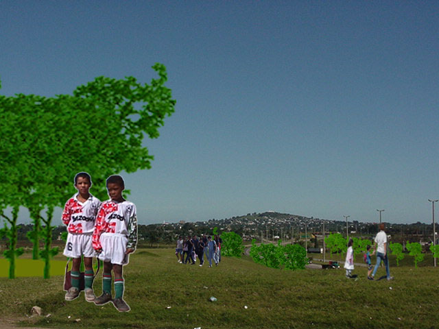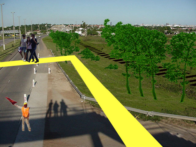Se propone un puente peatonal para niños y demás personas que asisten a los centros educativos de la zona. Se traslada la parada de ómnibus a la acera de enfrente y se proyecta una serie de plazas circulares elevadas rodeadas de árboles, concebidas como lugar de reunión de los estudiantes y vinculadas entre si a través del nuevo puente.