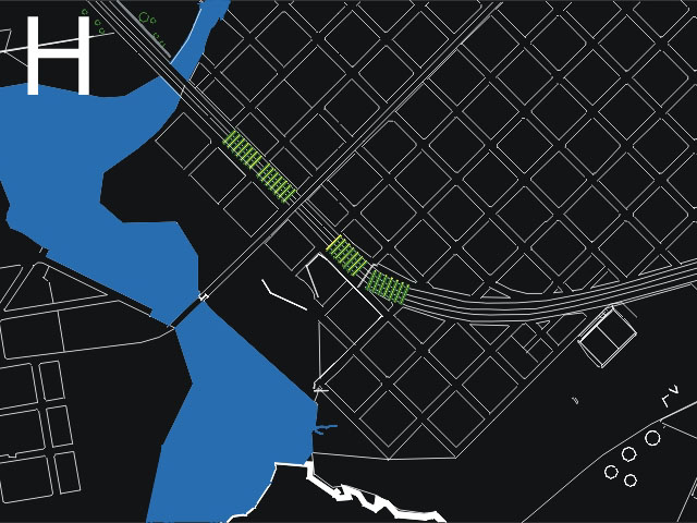 Propusimos algunos ◊ Traversings seguros en puntos singulares del área de estudio, con lo que buscamos a la vez inducir una secuencia bella de acceso a la ciudad para los □ traversing.