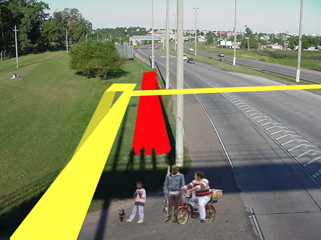 Mientras que los actores usuales de una carretera son los conductores, los protagonistas en este caso son las personas que cruzan la ruta. Se responde a este fenómeno trabajando sobre la topografía, planteando según el caso puentes o túneles.