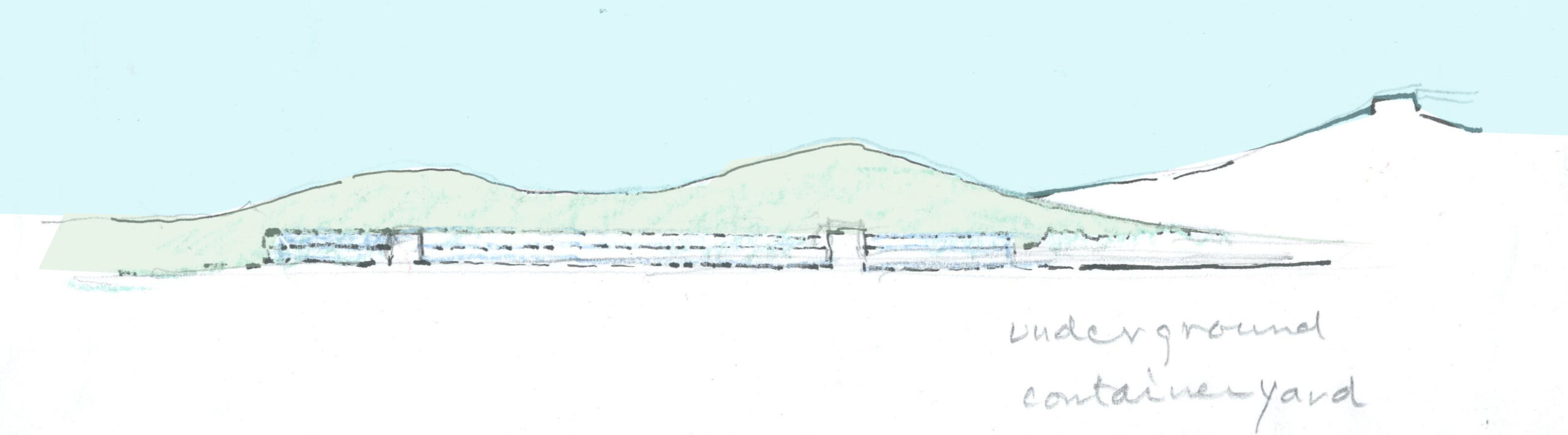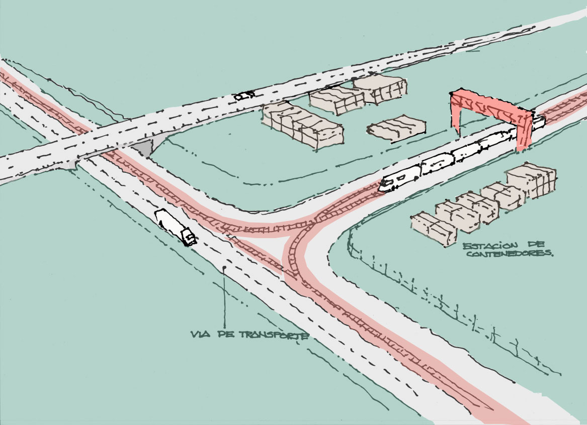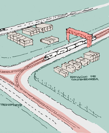 Por otra parte, a través del arco de la vía del tren propuesta, lograremos una fuerte conexión entre el puerto nuevo y el puerto principal.