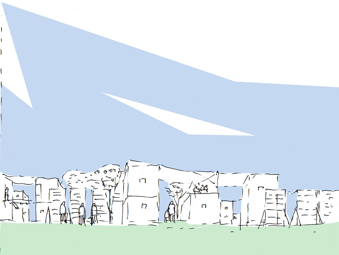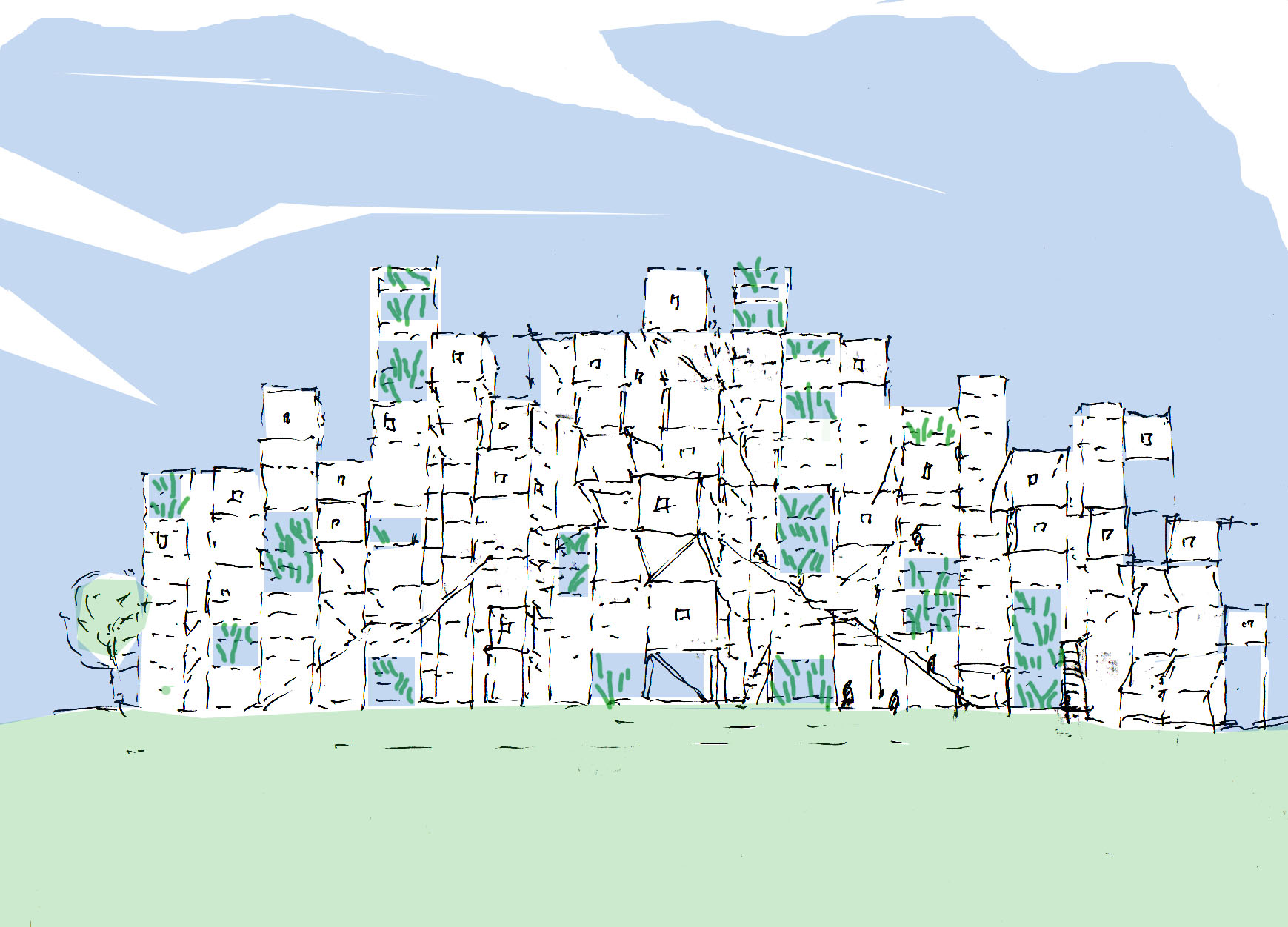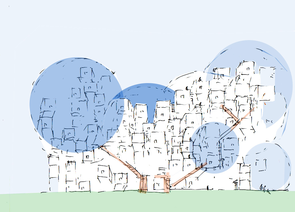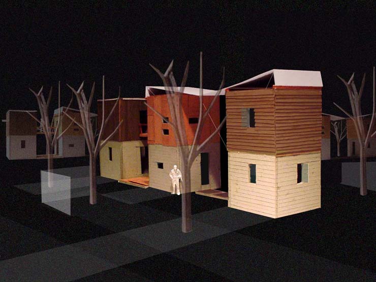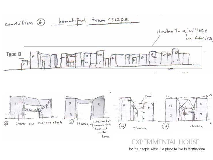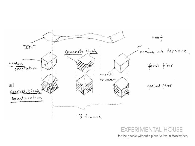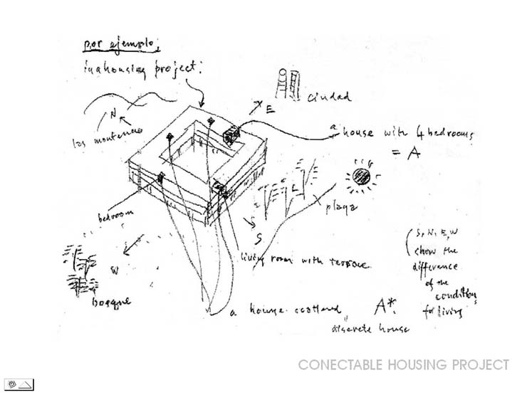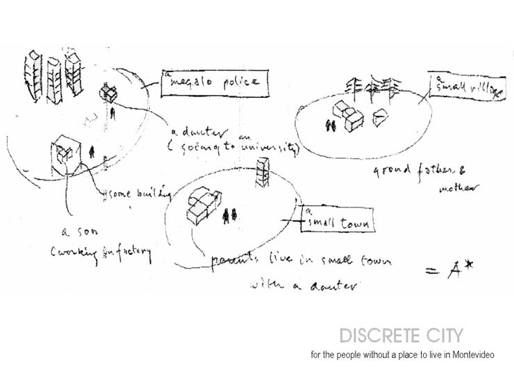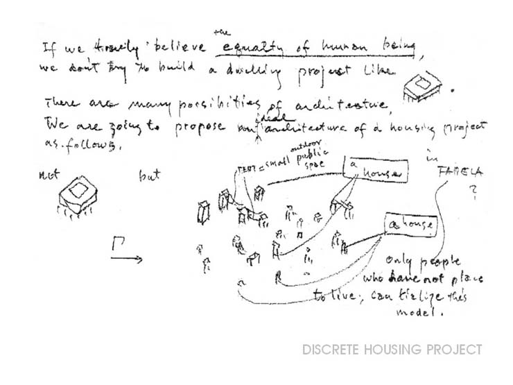 Estamos pensando que podría surgir un ejemplo de Ciudad Discreta si las personas pobres construyen sus casas de forma independiente, siguiendo algunos conceptos básicos.