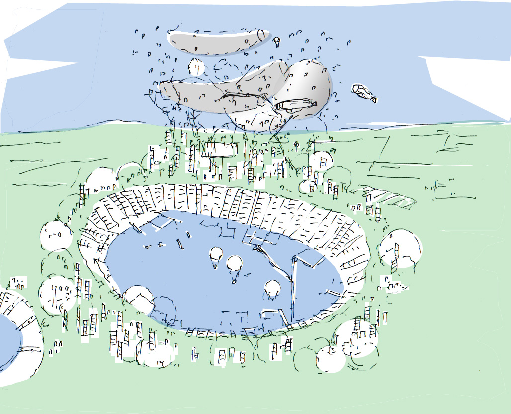 En gamma 4, suponemos un futuro muy distante. Ciudades flotantes como una nueva posible extensión de las actividades humanas.